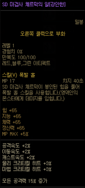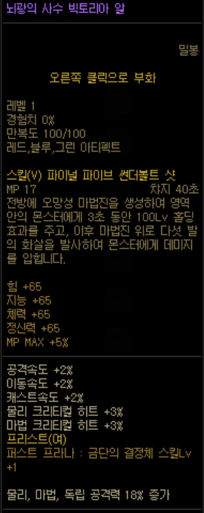 물마독과 함께 직업 스킬을 올려주는 크리쳐입니다.
